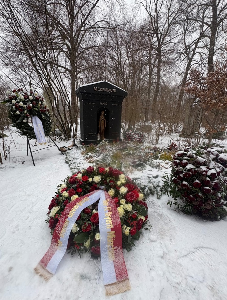 1月9日讯 据《图片报》报道,在德国足球传奇贝肯鲍尔逝世两周年之际,拜仁于本周四前往其墓地补献了花圈。
